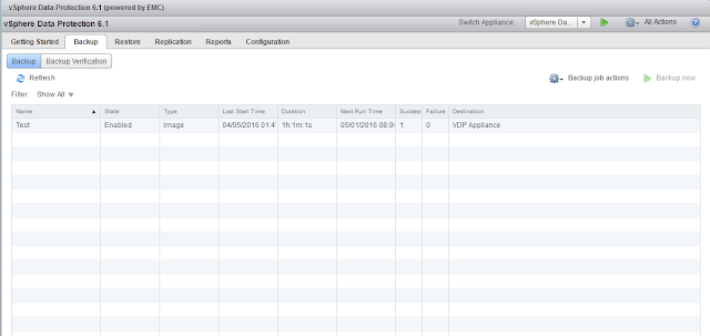 Now, login back to your web client, go to vSphere Data Protection. Connect the required appliance to web client and go to the backup tab and you will notice your backup job is still retained.